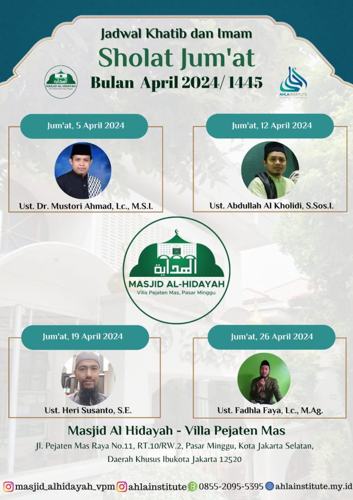 Jadwal Khatib Jum’at Masjid Al Hidayah VPM Bulan April