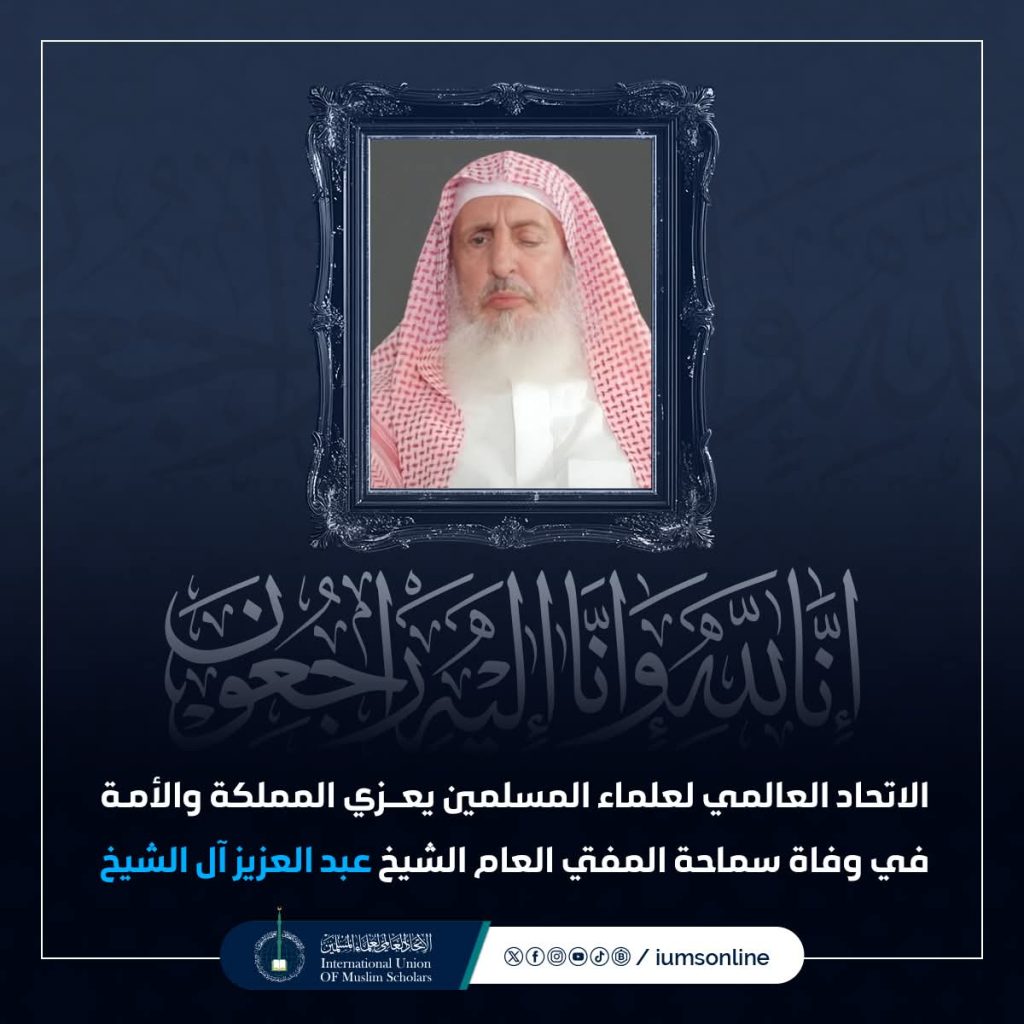 في الثالث والعشرين من سبتمبر 2025م، فقد العالم الإسلامي أحد أبرز رموزه الدينية والعلمية بوفاة سماحة الشيخ عبد العزيز بن عبد الله آل الشيخ، المفتي العام للمملكة العربية السعودية ورئيس هيئة كبار العلماء ورئيس الرئاسة العامة للبحوث العلمية والإفتاء. لقد عُرف الشيخ خلال مسيرته التي امتدت لعقود بصفته مرجعًا شرعيًا بارزًا، وجامعًا بين العلم والفتوى والدعوة، فضلاً عن مواقفه المبدئية من القضايا الإسلامية الكبرى، وعلى رأسها القضية الفلسطينية وما تشهده غزة من اعتداءات متكررة1