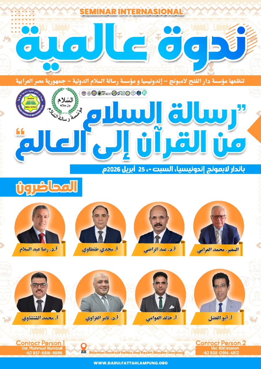 BANDAR LAMPUNG – Menghadapi tantangan global yang semakin kompleks, pesan perdamaian yang bersumber dari wahyu ilahi menjadi urgensi yang tak terbendung. Menjawab tantangan tersebut, Yayasan Darul Fattah Lampung bersinergi dengan Yayasan Risalah As-Salam Mesir akan menyelenggarakan Seminar Internasional bertajuk “Risalah Perdamaian dari Al-Qur’an untuk Dunia”.
