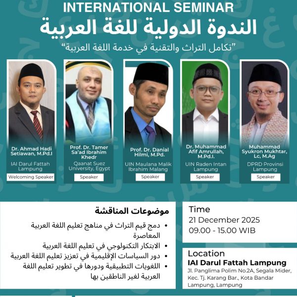 • Bandar Lampung akan menjadi saksi pertemuan para pakar dan praktisi bahasa Arab dari Mesir dan Indonesia. Pada hari Ahad, 21 Desember 2025 bertepatan dengan 1 Rajab 1447, Institut Agama Islam Darul Fattah (INDAFA) Lampung akan membuka pintunya dan menjadi tuan rumah untuk Seminar Internasional Bahasa Arab bertajuk “تكامل التراث والتقنية في خدمة اللغة العربية” (Integrasi […]